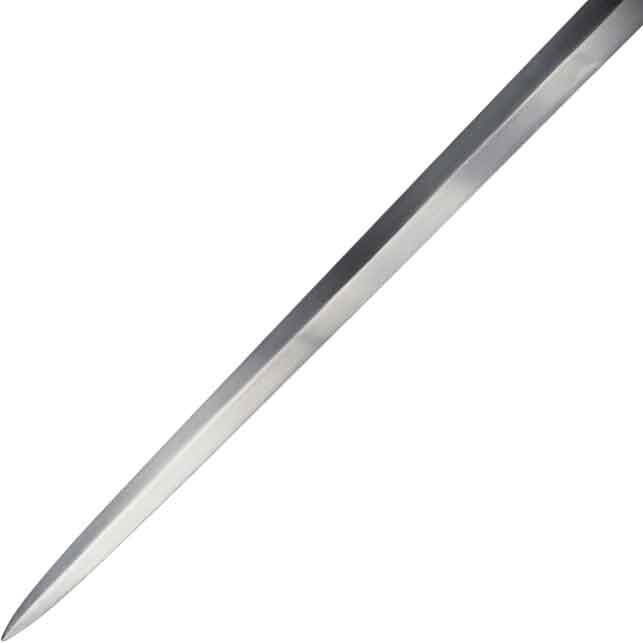 Inspired by the 15th Century German branch sword, this intricately detailed sword is worthy of a true knight or a prince of the Holy Roman Empire. Forged as one piece from C60 high-carbon steel, this gothic knight sword has a hardness of 48-52 HRc and is ready for battle. Carbon steel is renowned for its strength and durability. The unsharpened, double-edged blade has a diamond cross-section. This makes it great for thrusting and cutting attacks.